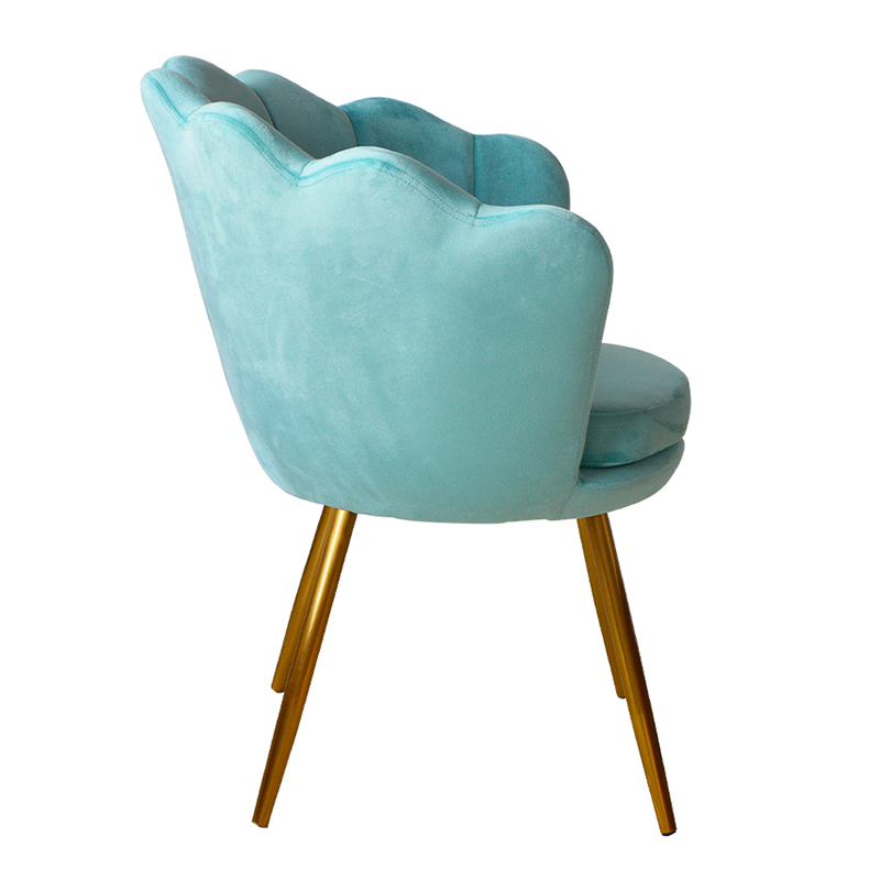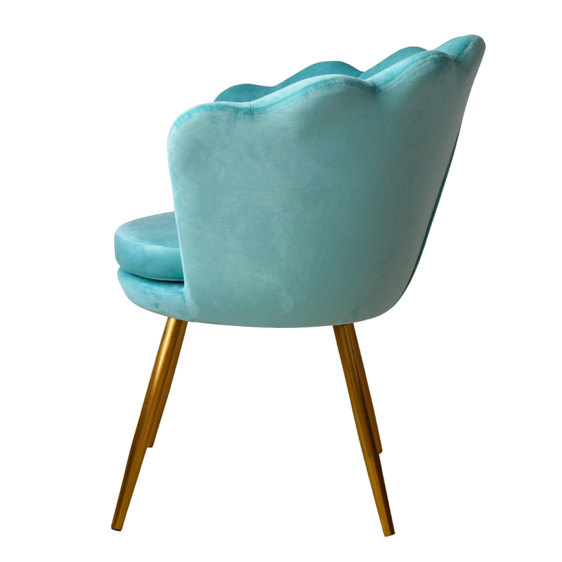 De stoel heeft een stevig metalen frame dat zorgt voor stevigheid en duurzaamheid, terwijl de zachte fluwelen stof zorgt voor een comfortabele en gezellige zitplek. De stoel is ook ontworpen met ergonomische rondingen die uw rug ondersteunen en vermoeidheid en ongemak helpen verlichten.