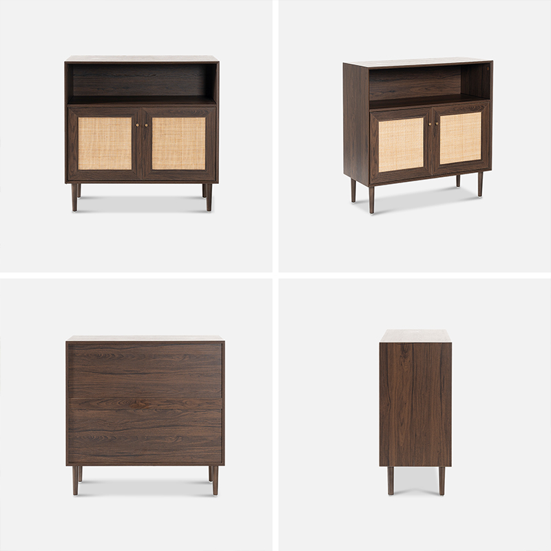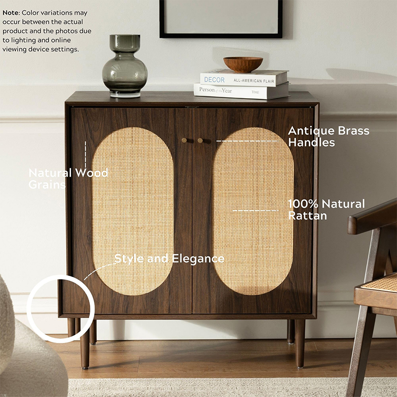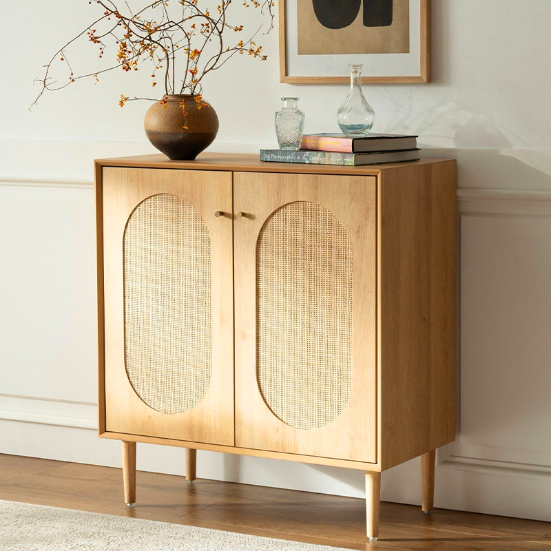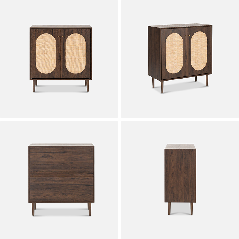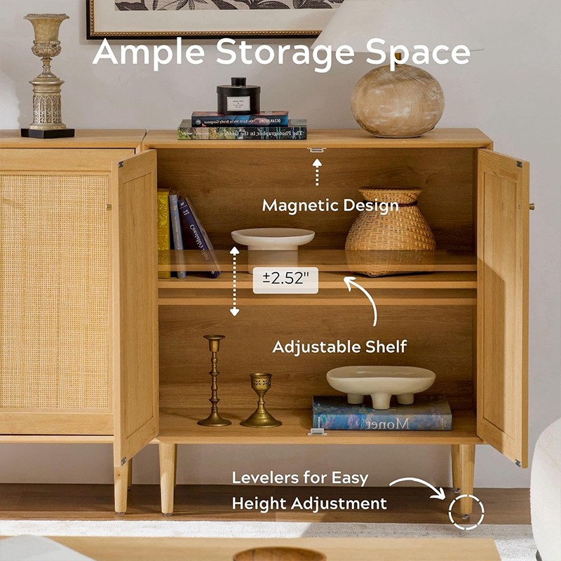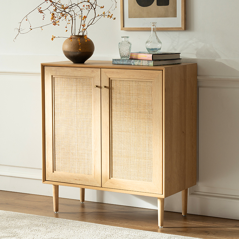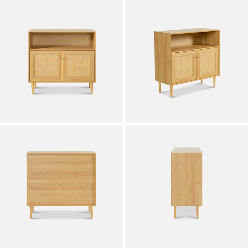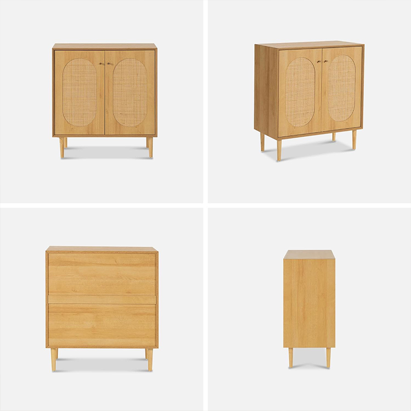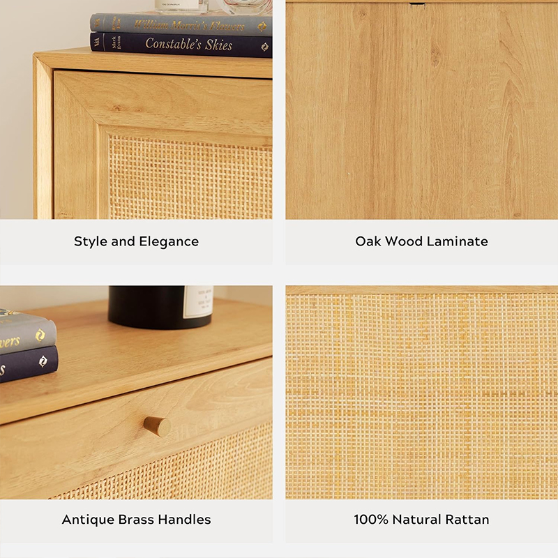 | Materiaal | Massief houten bord met MDF-afwerking en afwerking van echt rotan |