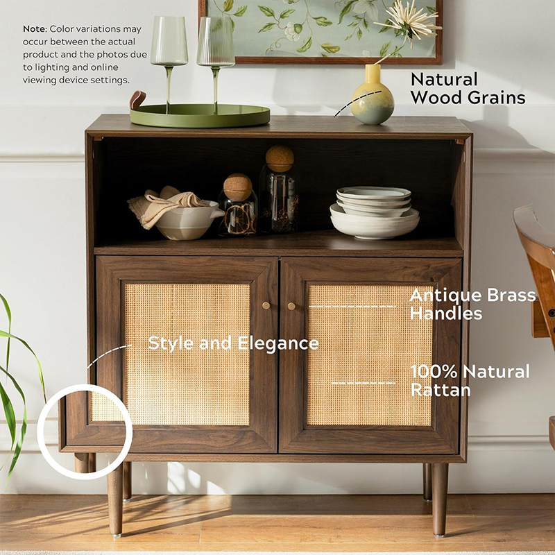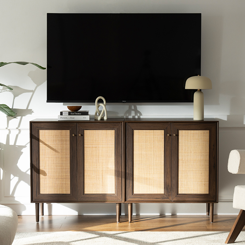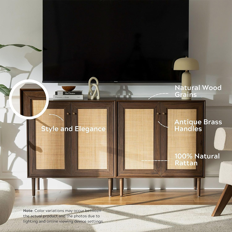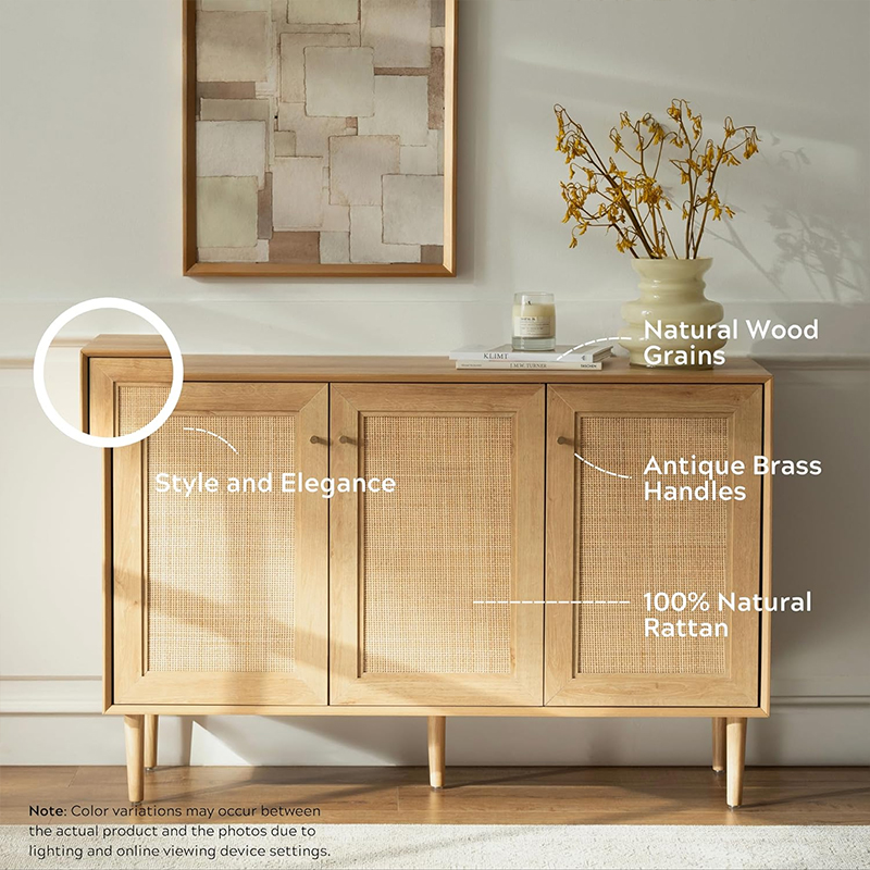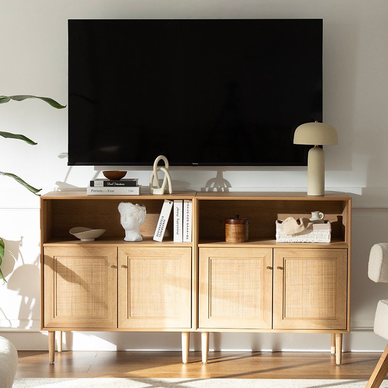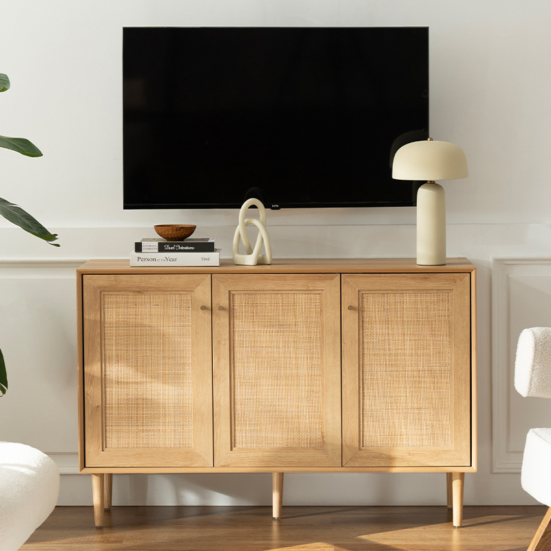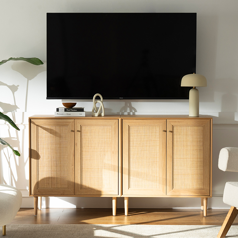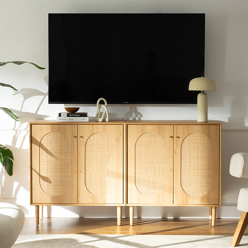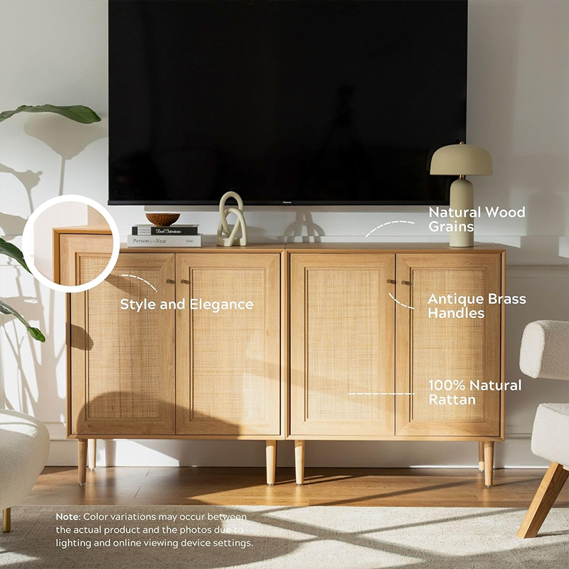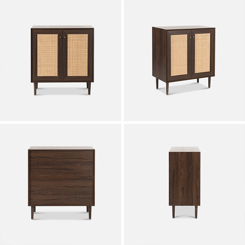 | Materiaal | Massief houten bord met MDF-afwerking en afwerking van echt rotan |