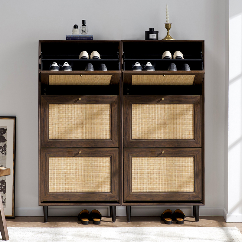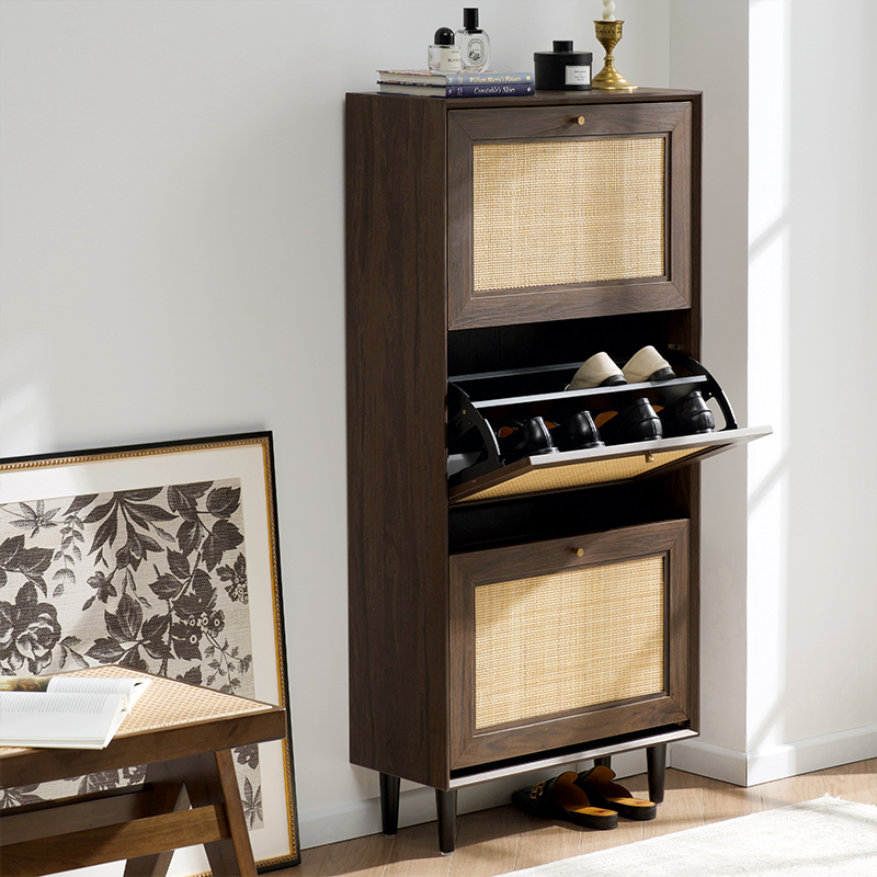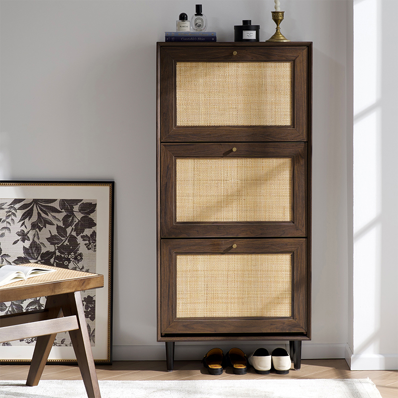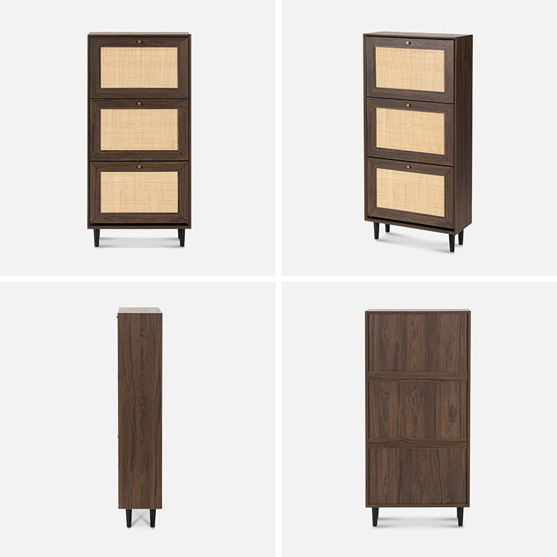 Samenvattend is de driedeurs rotanhouten schoenenkast Y-C39 een functioneel en stijlvol meubelstuk waarmee u uw schoenen georganiseerd en netjes kunt houden. Met zijn ruime opbergruimte, verstelbare planken, duurzaamheid en veelzijdige ontwerp is het een goede aanvulling voor elk huis.