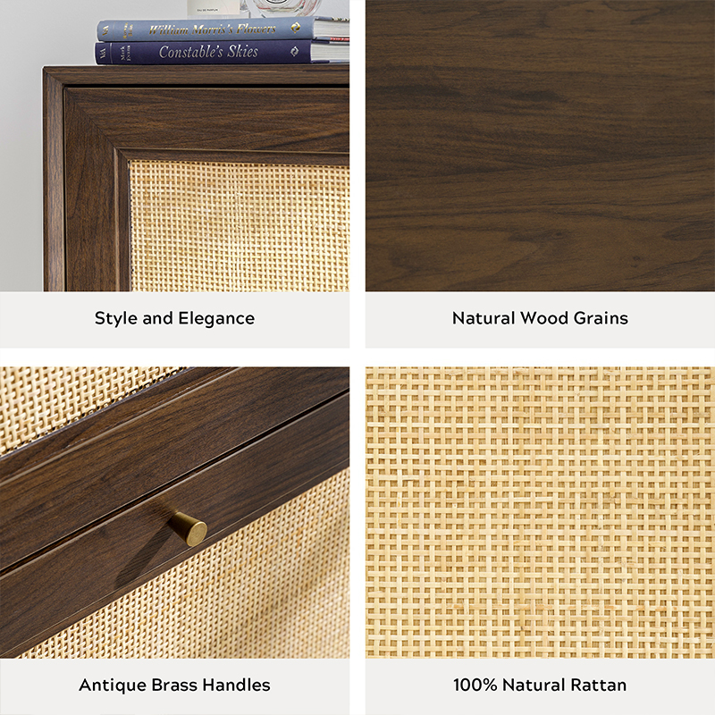 | Materiaal | Massief houten bord met MDF-afwerking en afwerking van echt rotan |