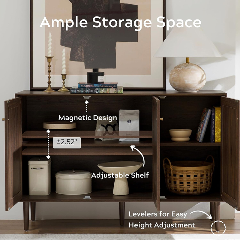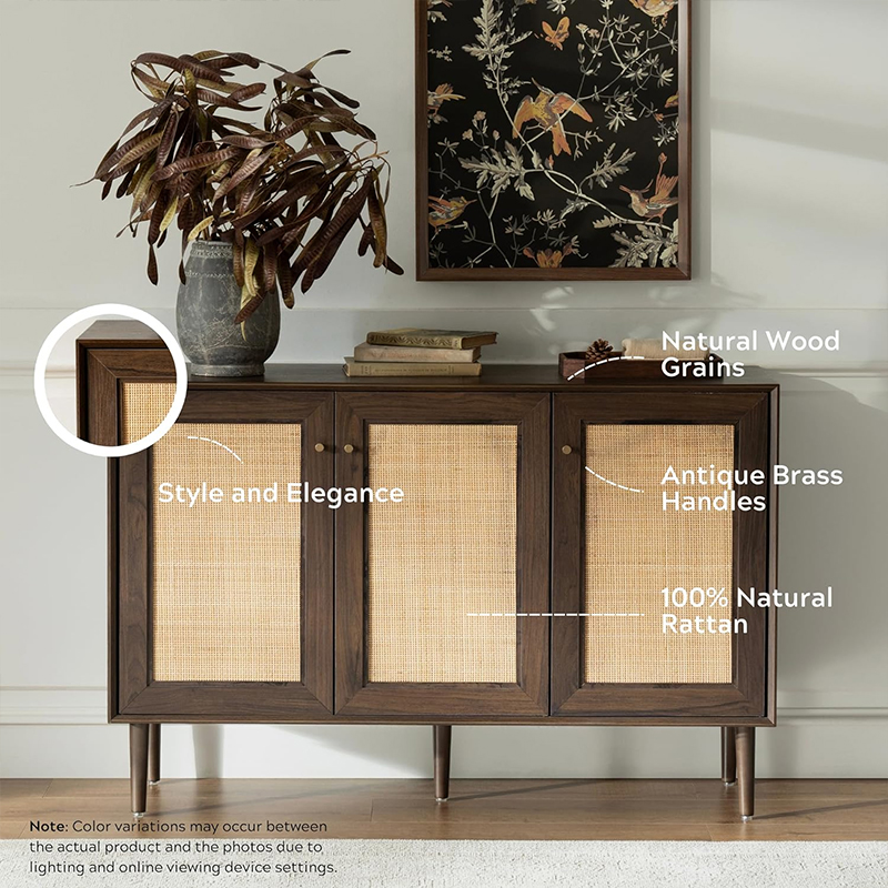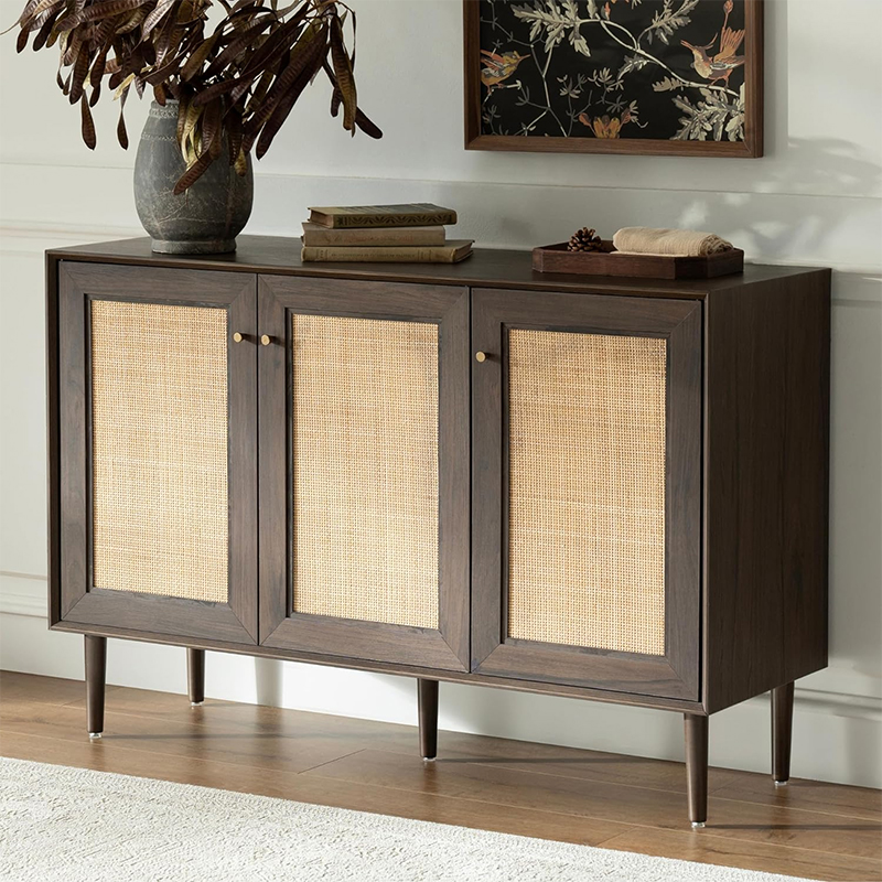 De houten rotan keukenopbergkast met drie deuren (Y-C42) is een geweldige aanvulling op elke keuken. Deze kast biedt functionaliteit, stijl en duurzaamheid. Het is gemaakt van hoogwaardige hout- en rotanmaterialen, wat een lange levensduur en goede bouwkwaliteit garandeert.