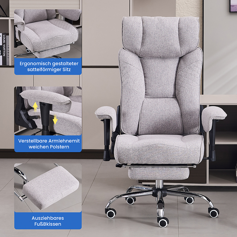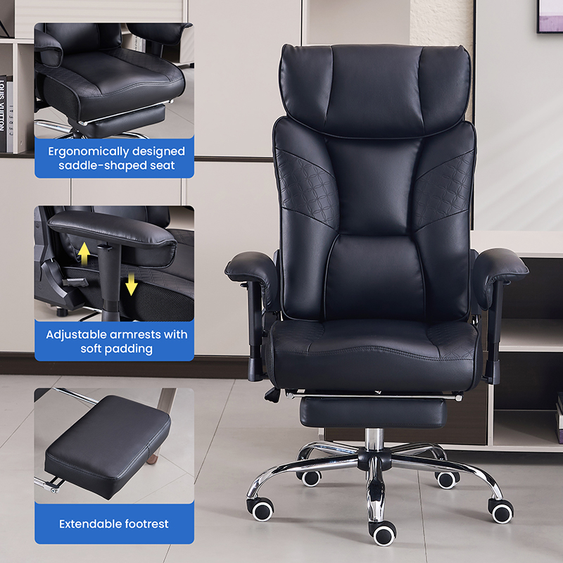 Maak kennis met onze premium lijn Executive-bureaustoelen, zorgvuldig vervaardigd om de luxe en ergonomische uitmuntendheid van uw werkruimte opnieuw te definiëren. Deze stoelen zijn meer dan alleen zitoplossingen; ze zijn een bewijs van uw professionele status en combineren een verfijnd ontwerp met ongeëvenaard comfort. Elke directiestoel is vervaardigd uit de beste materialen en beschikt over een robuust frame van hoogwaardig aluminium of gepolijst hout, waardoor duurzaamheid wordt gegarandeerd die de tand des tijds doorstaat. De soepele, volnerf lederen of hoogwaardige stoffen bekleding omhult u in weelde en biedt een keuze aan kleuren die passen bij elke kantooresthetiek, van klassiek zwart tot elegante aardetinten. Onze stoelen zijn voorzien van geavanceerde ergonomische ontwerpen, waaronder een verstelbare lendensteun, die zich aanpast aan de natuurlijke ronding van uw wervelkolom, waardoor de rugbelasting tijdens langere werkuren wordt verminderd. Met in hoogte verstelbare stoelen, verstelbare kantelmechanismen en 360 graden draaifunctie bevorderen ze dynamische zithoudingen, waardoor de focus en productiviteit worden verbeterd. Innovatieve armleuningen, gewatteerd voor goed comfort, zijn vaak in hoogte en breedte verstelbaar en bieden persoonlijke ondersteuning om schouder- en nekspanning te verlichten. Het vijfsterrenonderstel, uitgerust met soepel rollende zwenkwielen, zorgt voor stabiliteit en maakt een moeiteloze beweging over verschillende vloeroppervlakken mogelijk zonder schade te veroorzaken. Omarm het toppunt van kantoorstoelen met onze directiebureaustoelen – waar elegantie en ergonomie samenkomen en uw werkruimte transformeren in een rijk van productiviteit en verfijning. Verbeter uw dagelijkse routine; investeer in een stoel die niet alleen aansluit bij uw bestuursstatus, maar ook actief bijdraagt aan uw welzijn. Ervaar vandaag nog het verschil.