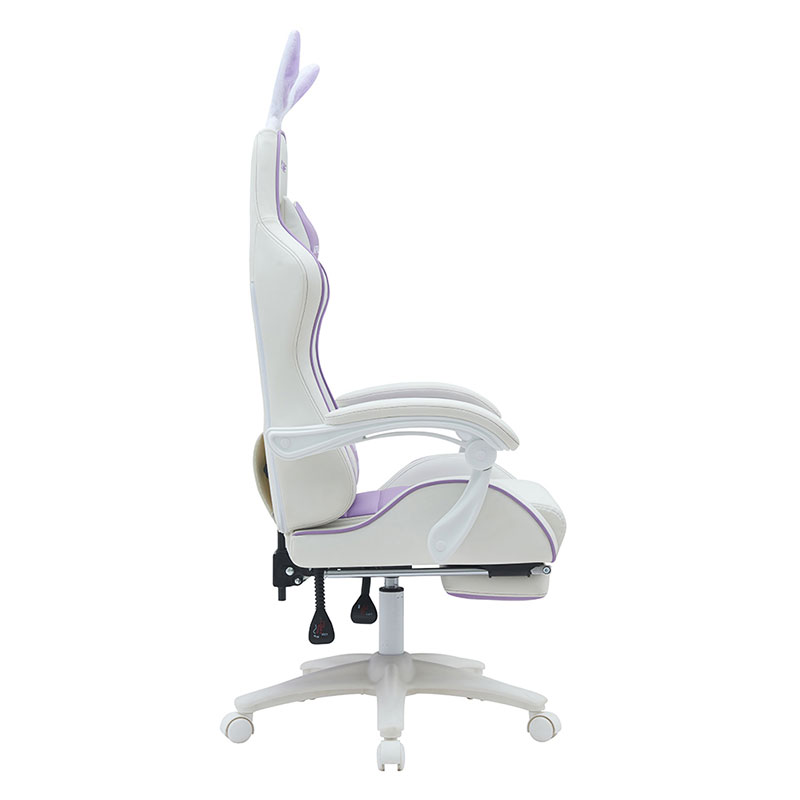 | Materiaal | PVC PP verstelbare armleuning Ligmechanisme 100 mm klasse 3 gaslift 320 mm nylonbasis 50 mm PU-kleurenwielen Met nekkussen en taillekussen Karton: 250 pond Met voetsteun Met RGB-licht |